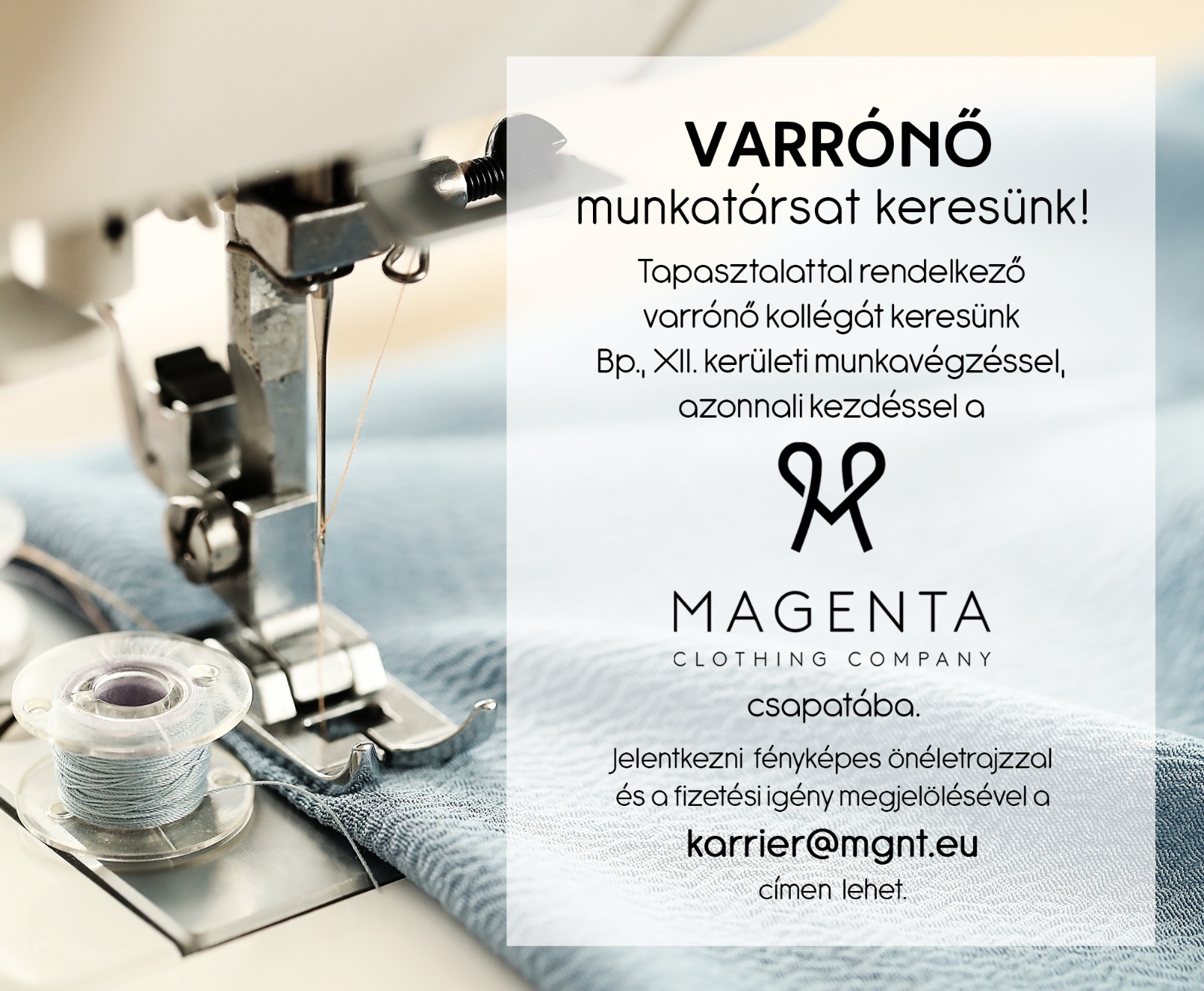 ???? Join the Magenta Fashion team and help us bring our unique and stylish garments to life!